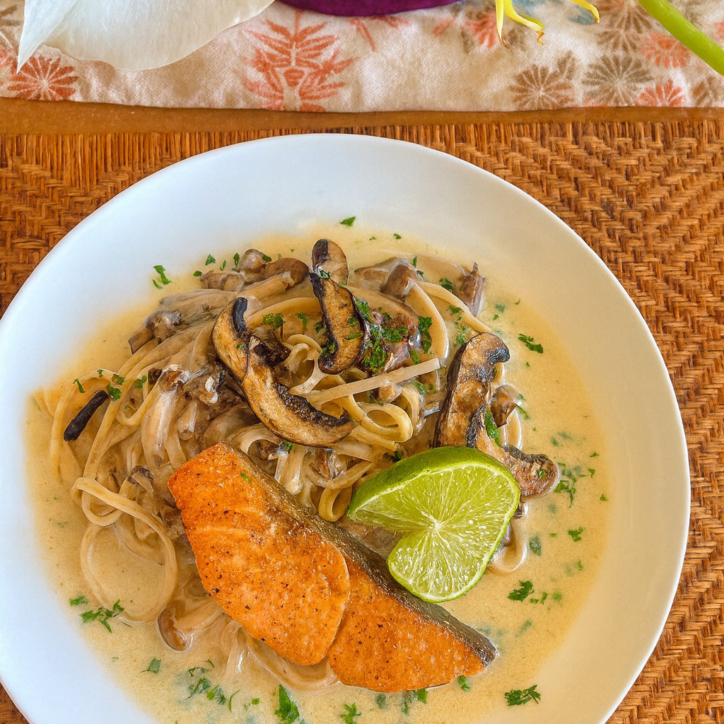 今日の一皿 ― 「ポータベーロのパスタ with サーモン」