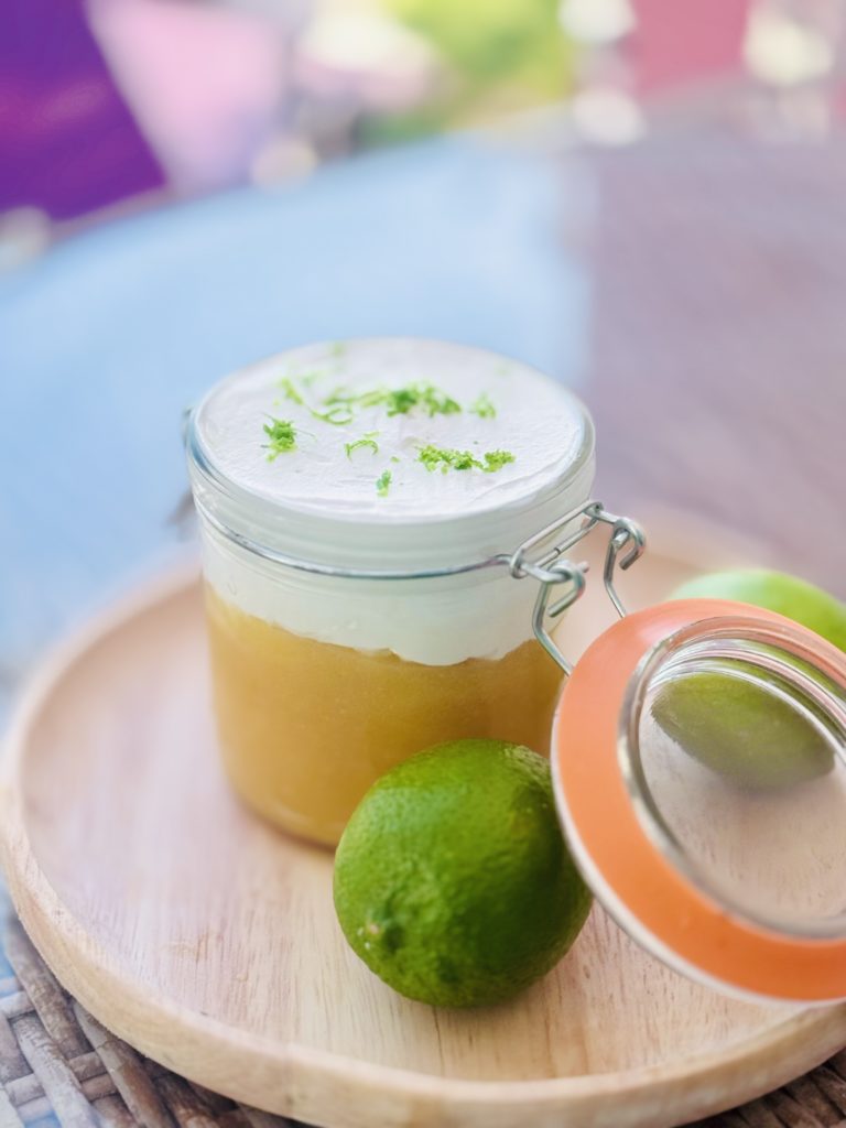 瓶に詰めたライムカードの上に、ふわっとホイップした生クリームをレイヤーにして重ねるのだ。見た目は少し上品で、ちょっと「ちゃんとした人が作った感」が出てないか?笑