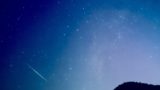 その時だった。 東の空に低く、たなびくようなアーチを描き始めた天の川。その淡い光の帯を、一点の光が音もなく横切っていった!
